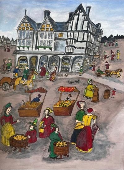 To encourage further learning, facts about the picture should be entered into the competition on a separate piece of paper. For example, if the artwork depicts a Tudor market, some accompanying facts may include: "Some Tudor markets sold newly discovered fruits and vegetables such as potatoes or tomatoes". Entries should include an email address for contact but no other personal details.